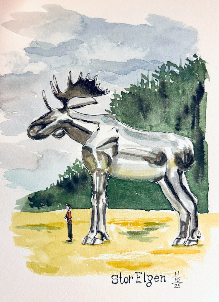 Stor Elgen, Nord-Norwegen Aquarell Urbansketching Urlaubstagebuch weeanja 11. Oktober 2025 Fineliner, Schmincke Horadam-Aquarell, Etchr Sketchbook A5