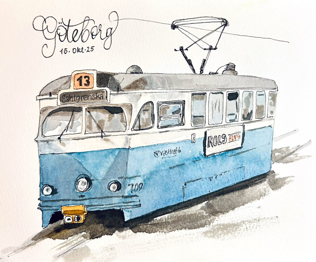 Göteborg, Schweden Aquarell Handlettering Urbansketching Urlaubstagebuch weeanja 15. Oktober 2025 Fineliner, Schmincke Horadam-Aquarell, Etchr Sketchbook A5